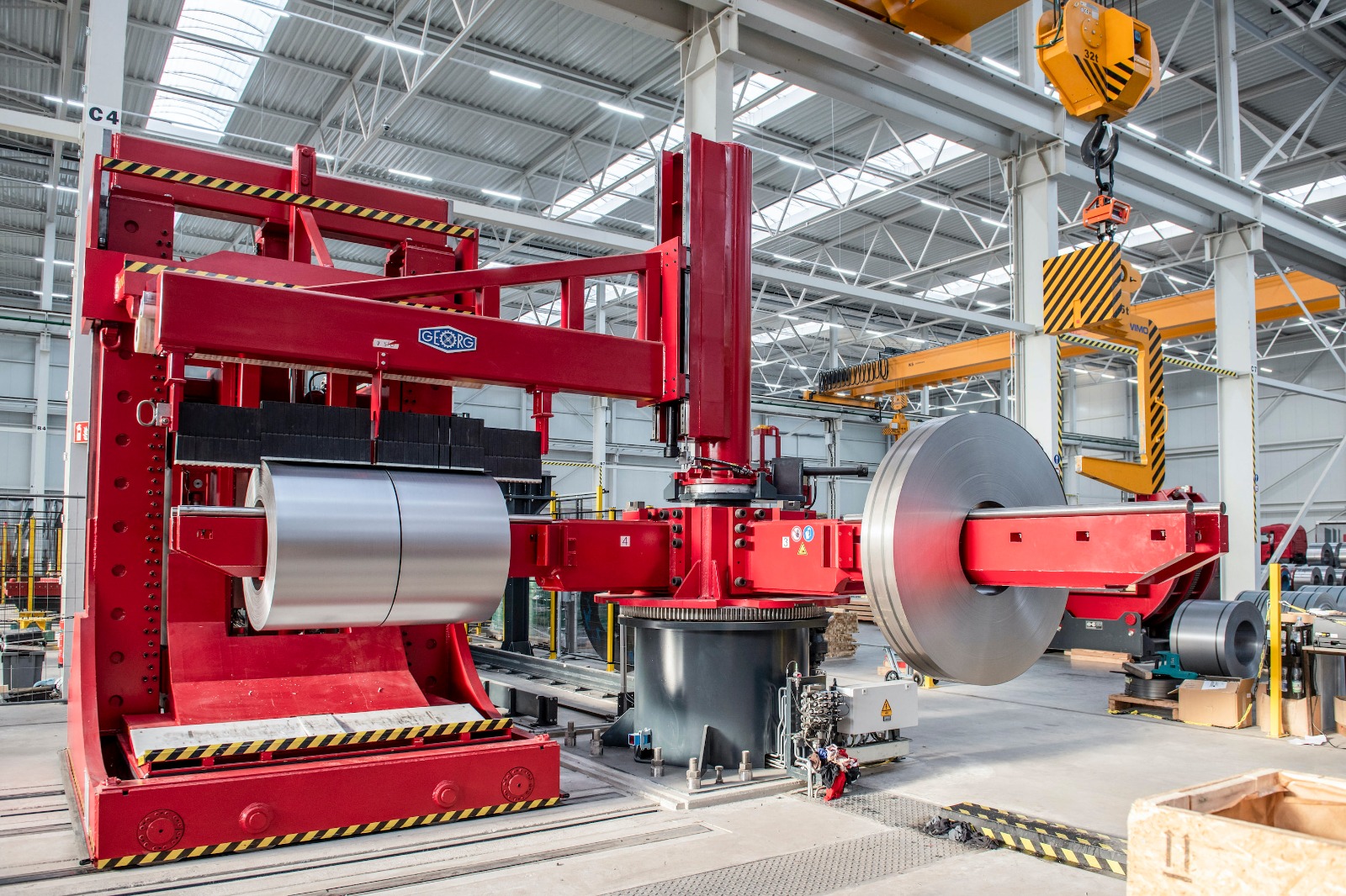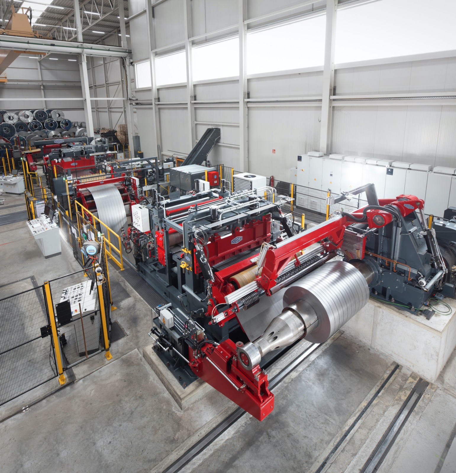 Die Georg SPA findet ihren Einsatz in der Herstellung von Spaltbänder in stehender und liegender Ausführung. Die Anlage des deutschen Markenherstellers Georg ist auf dem neuesten Stand der Technik und erfüllt höchste Qualitätsansprüche an Schnittergebnis und Oberflächenqualität.